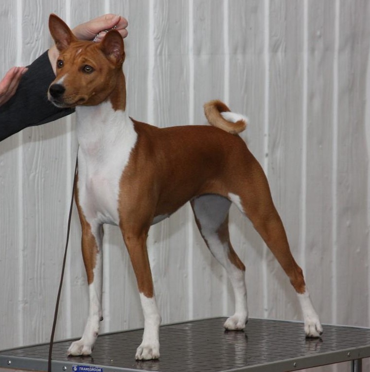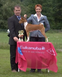 Am 09. Dezember kam Jill dann zur Welt, als letztgeborene des J-Wurfes. Ihr Vater ist der US Import Ch Meisterhaus Tail of Intrigue. Tre lebt in Schweden bei Christina Krol, Kennel Wazin. Jill hat sich prima entwickelt, sie hat einen ausdrucksvollen Kopf mit vielen Stirnfalten. Sie besticht durch ein leuchtendes rot und pure Eleganz. 2009 hat sie sich bereits erfolgreich im Showring präsentiert, 3x wurde sie bester Welpe, davon einmal auf der Basenji Spezialschau in Lorch. In Hannover wurde bester Jugendbasenji, Deutschen Jugend Champion VDH und Bester der Rasse. Im Ehrenring kam sie sogar noch unter die besten sieben. Außerdem wurde Jill in Deutschland "Bester Jugendbasenji des Jahres 2009"! Wir freuen uns schon sehr ihr Showjahr 2010 Außerdem glauben wir, dass Jill auch sehr erfolgreich auf der Rennbahn und im Coursing sein wird. Sie hat einen ausgeprägten Jagdtrieb...... |