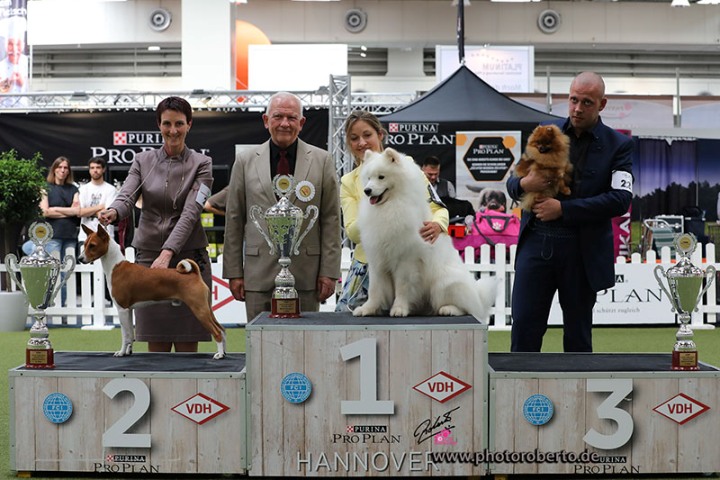 Lord wird am Freitag Bundessieger und Rassebester (BOB), Marge Bundessiegerin und beste Hündin (BOS),