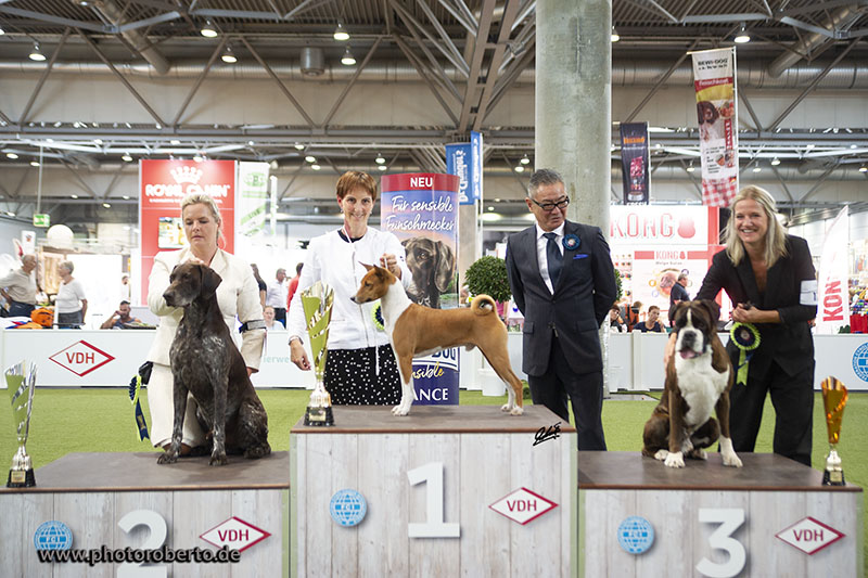 Heute ging's zur Bundessiegerschau in Dortmund, 19 Basenjis gemeldet, davon alleine sechs in der Jugendklasse Rüden.