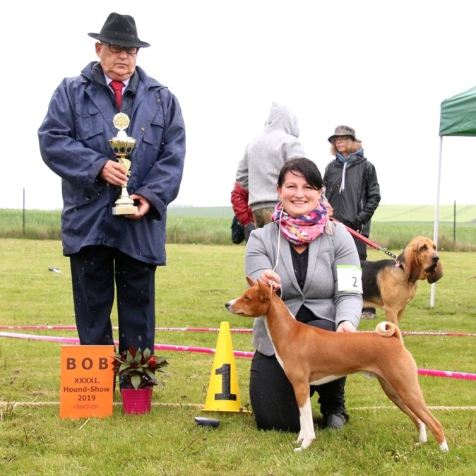 Auf der Hound-Show in Schöningen startet DaVinci (Mutabaruga's Wailing Wailers) zum ersten Mal in