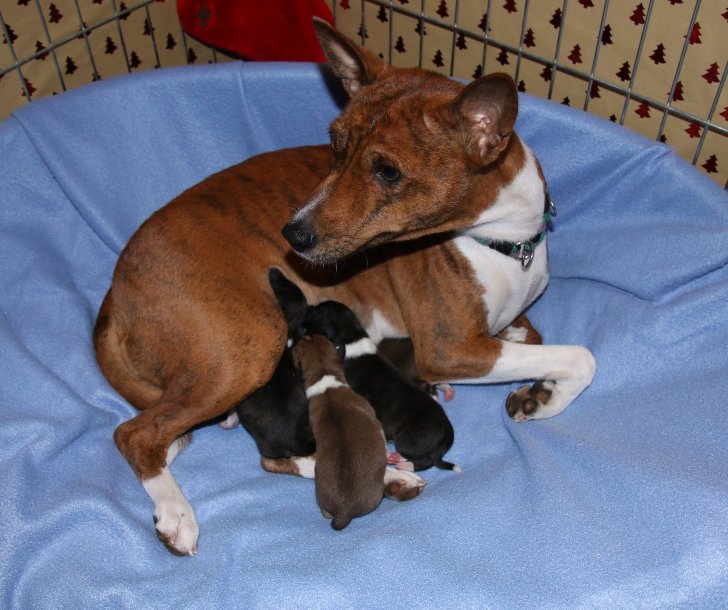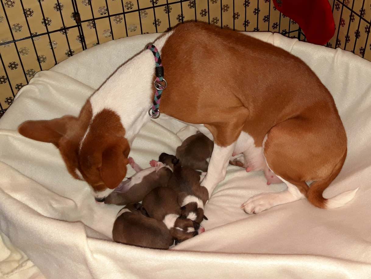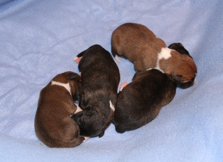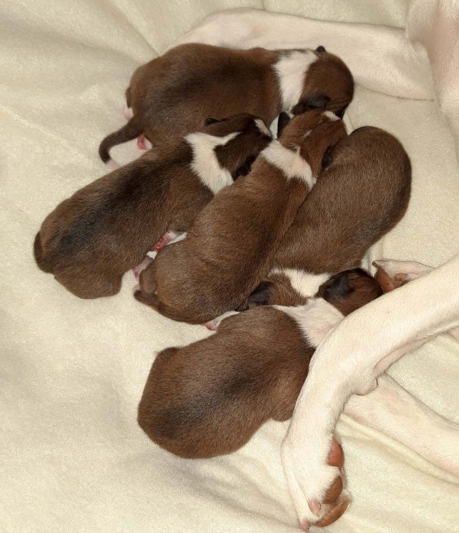 Heute Nacht hat Ziva vier Welpen (2 Rüden rot/weiß, 1 Rüde bri und 1 Hündin bri) zur Welt gebracht.