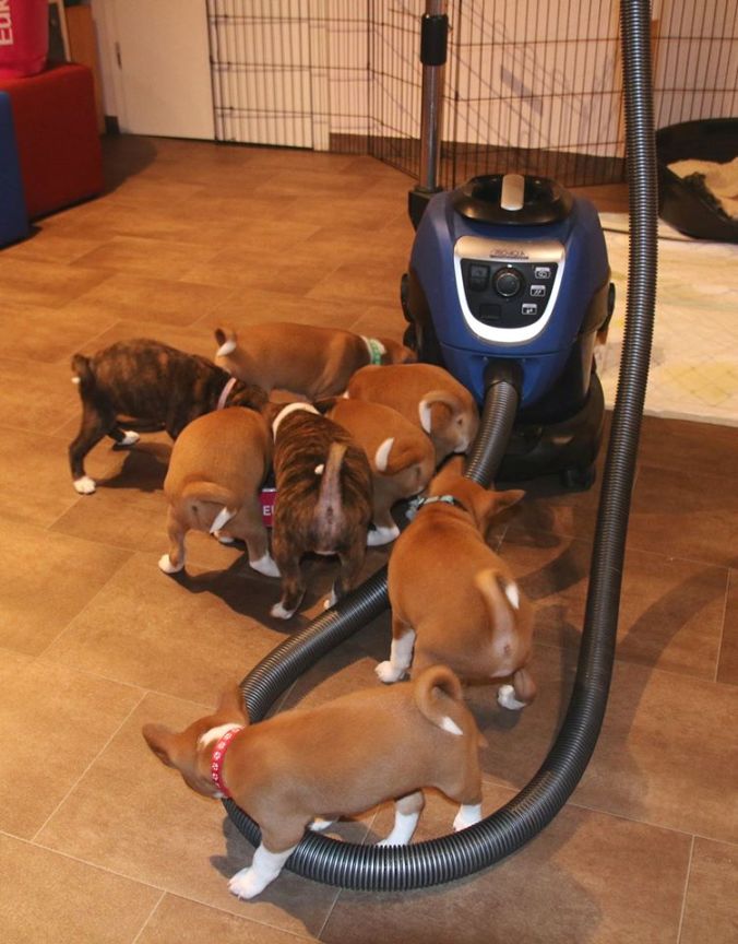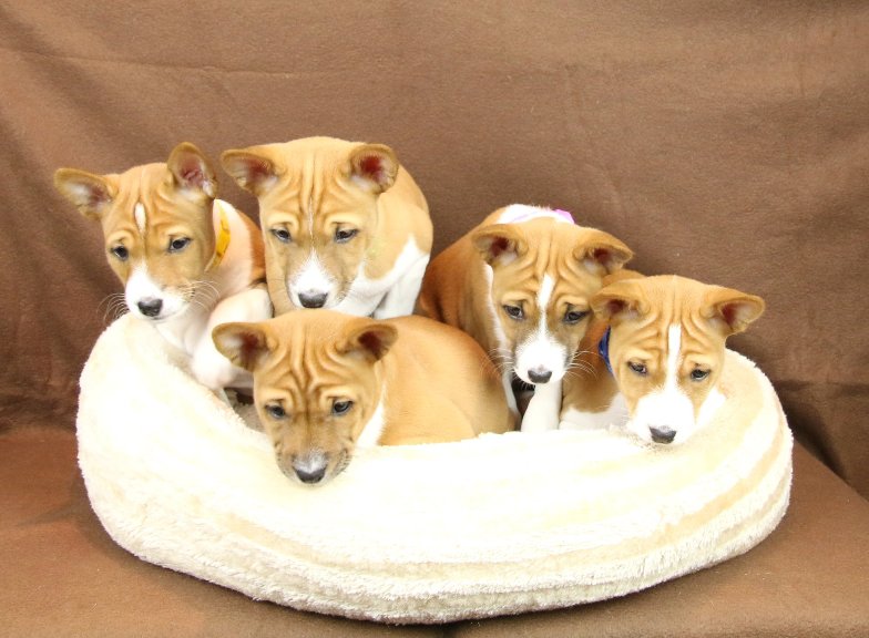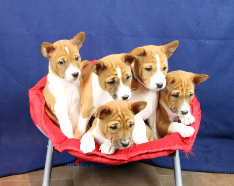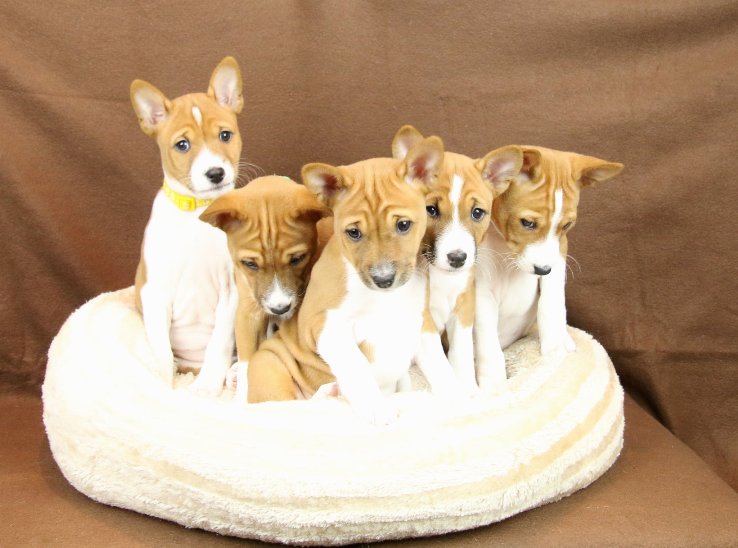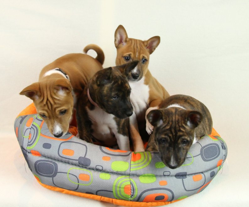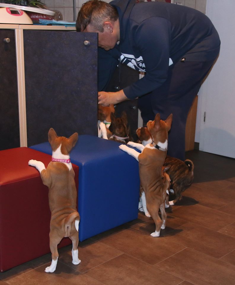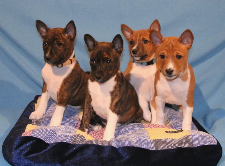 Nun sind die Z's schon sieben Wochen alt und wird immer schwieriger ein gescheites Gruppenfoto der Bande zu bekommen, denn ganz basenjitypisch haben sie nun alle ihren eigenen Willen und wollen nur machen wonach ihnen der Kopf steht und still sitzen, wenn man doch hellwach ist, steht da ganz und gar nicht auf dem Programm. Aber ich glaube, es ist uns trotzdem wieder ganz gut gelungen.