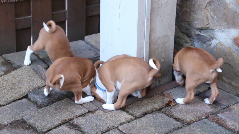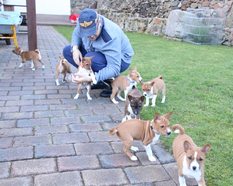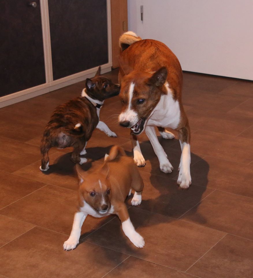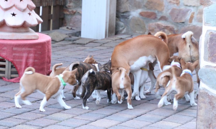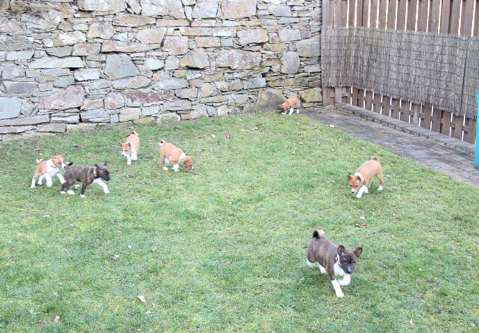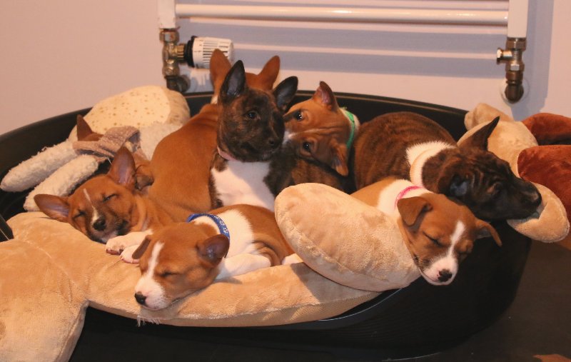 Jetzt sind die Z-Welpis schon sechs Wochen alt und so richtig kleine Basenjis, mutig, neugierig und bewegungsbedürftig. Da tut frische Luft, auch bei Minusgraden, mehrmals am Tag gut. Während des Fotoshootings der Z's, sind die A's schon mal ins Bett gegangen. Danach haben die Z-lingen noch mal kurz richtig aufgedreht, bis sie sich dann nach und nach zu den A-lingen gekuschelt haben. Wir freuen uns sehr über die ruhigen Nächte - morgens wecken wir die Kleinen gegen sechs Uhr und werden erst mal lautstark gähnend empfangen. Dann geht es fix raus in den Garten und dann Frühstück bitte!