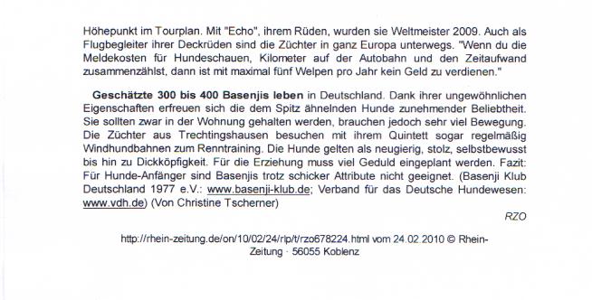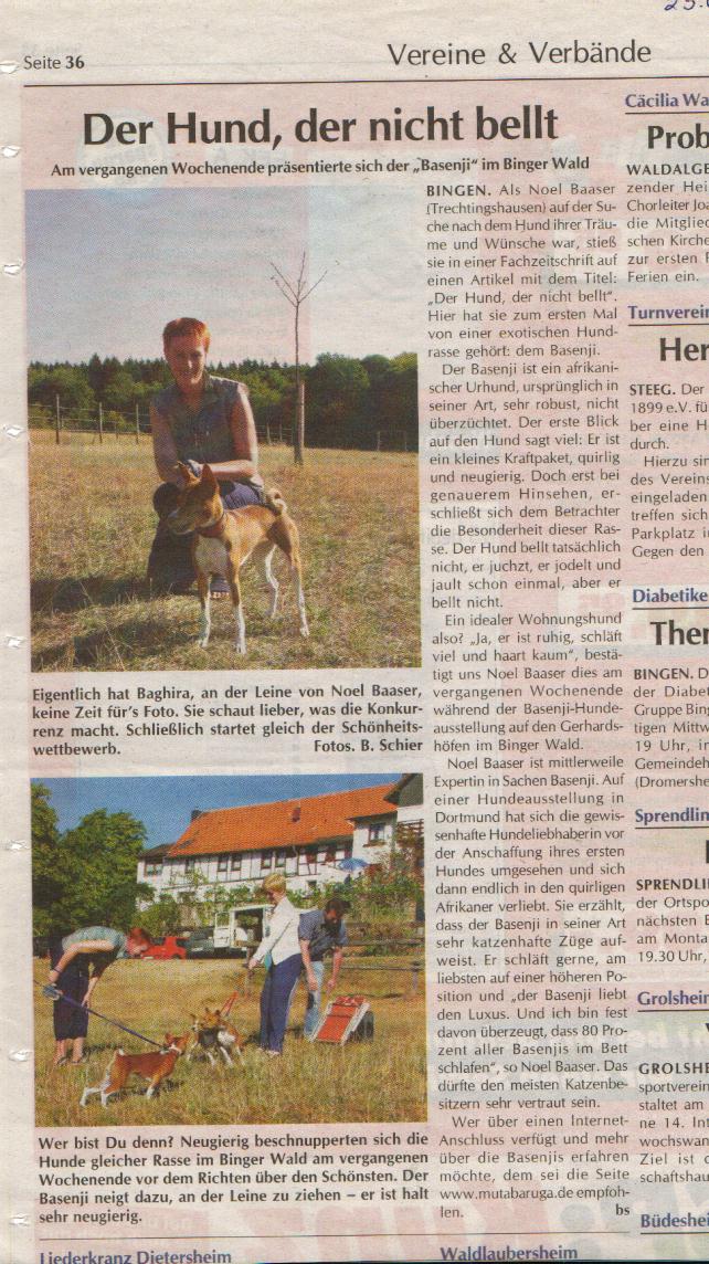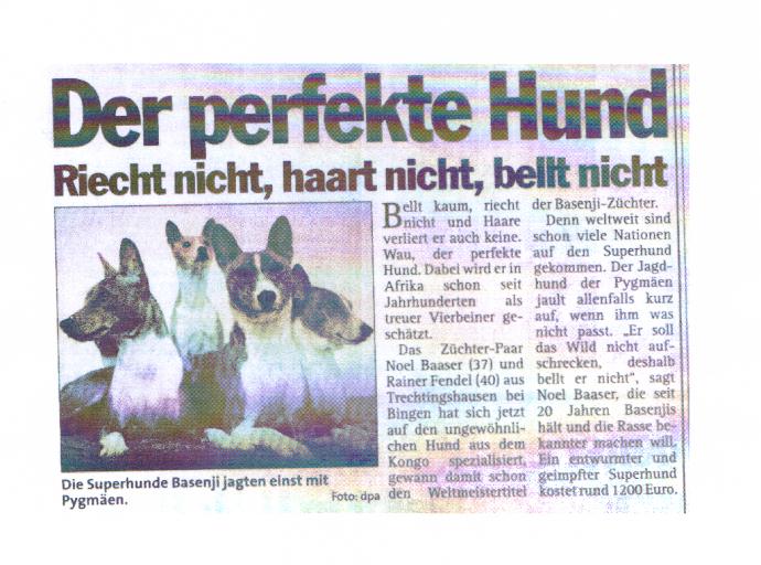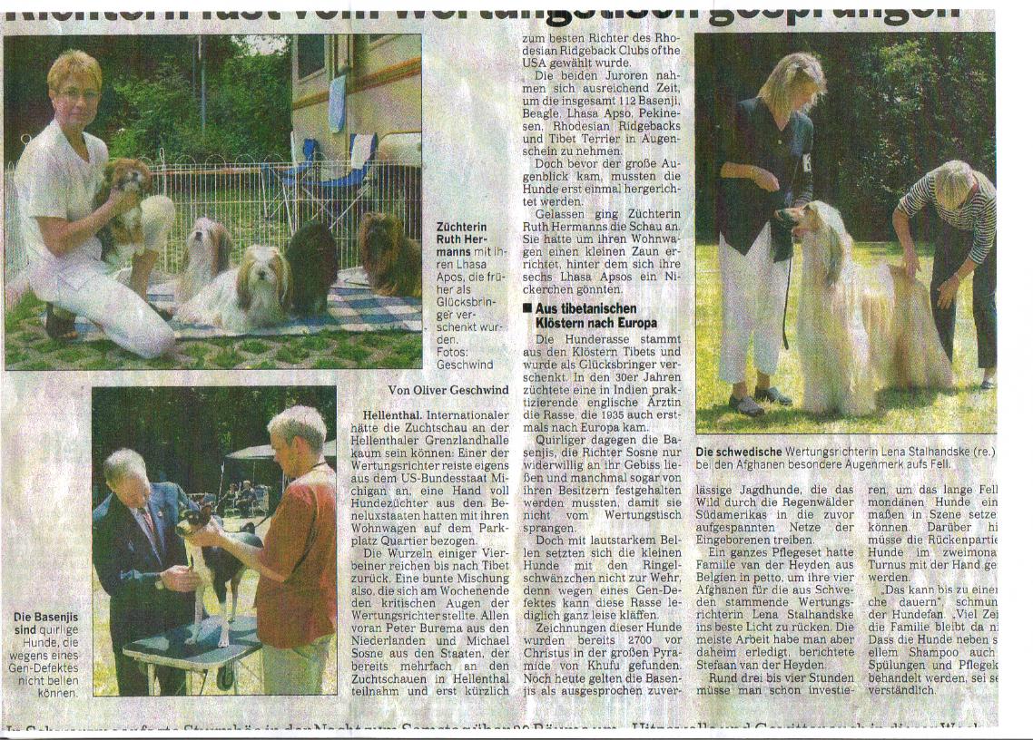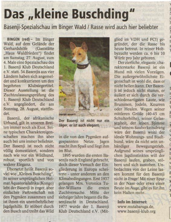Zeitung anlässlich Basenji-Spezialschau Trechtingshausen 07/1998